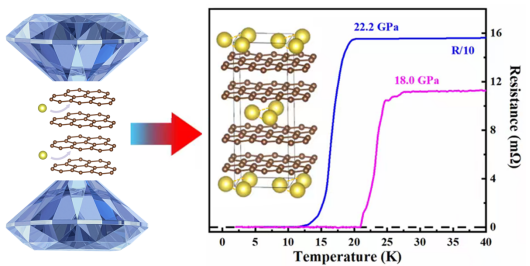 高压与超硬材料全国重点实验室王洪波教授等人在新型碳基超导体研发方面获得新进展。自从发现超导电性以来,新型高温超导体的探索一直是凝聚态物理与材料科学领域的研究热点。低维度长期以来被认为是促进高温超导的重要因素。石墨插层化合物(graphite intercalation compounds, GICs)作为典型的二维材料体系,其独特的电子结构和可调控的层间相互作用,使其在探索高温超导机理与新型超导材料方面备受关注。然而,尽管经过多年的努力,石墨插层化合物中的超导转变温度最高纪录仍停留在2007年报道的CaC₆体系,在高压下仅为15.1 K。