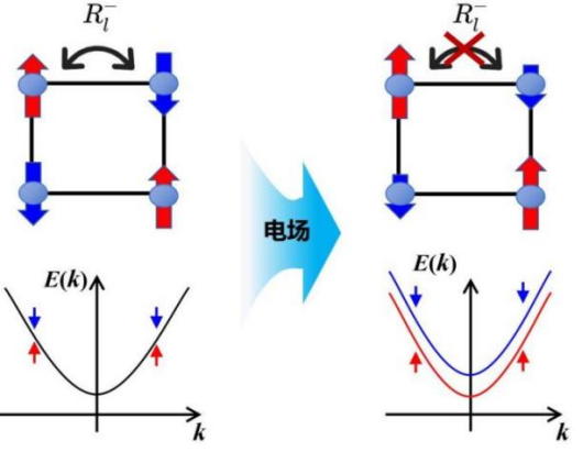 图:电场驱动非相对论性塞曼自旋劈裂的示意图