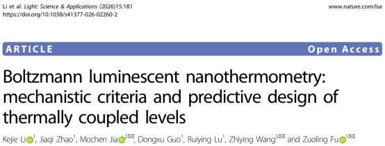 Light Sci. Appl.| 付作岭教授团队在玻尔兹曼型发光纳米温度计研究方面取得重要进展